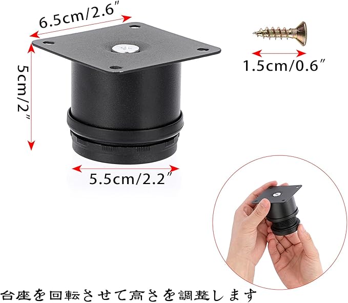 高さ調節可能:この円筒形のキャビネット脚の高さは5cmから6.4cmまで調整でき、ニーズに応じて高さを調整できます。