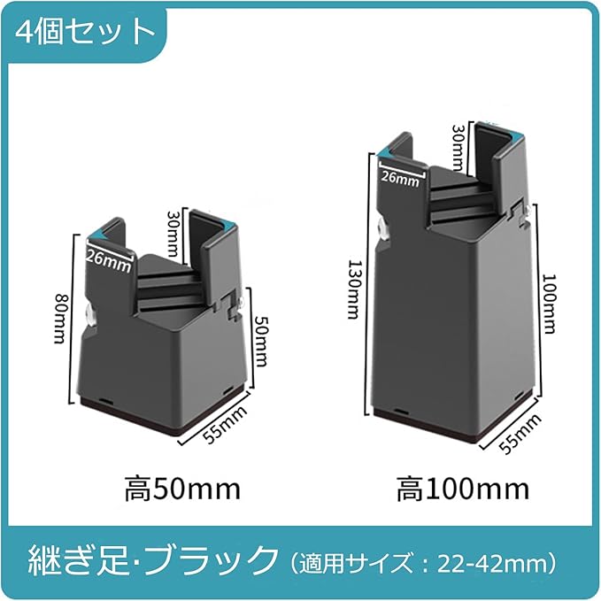 【22~42mm家具脚に対応】22〜42 mmの調整可能な継ぎ足は、複数の家具に適合することができます。ゴム綿素材が家具の足を包み込み、家具を傷つけにくく、落下しにくい