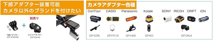 コンボモデルはゴープロインターフェイスのある専用の下部アダプター(GP-K400A)が付属 ゴープロHEROシリーズ ・Shimano・ Garmin・fry12などのカメラが装着が可能。