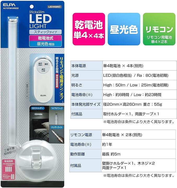 離れた場所からo /offできます。便利な取付ホルダーも付属。 high/lowの明るさ2段階切替が可能です。