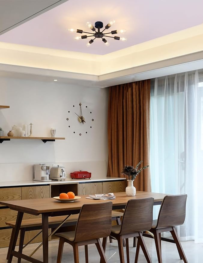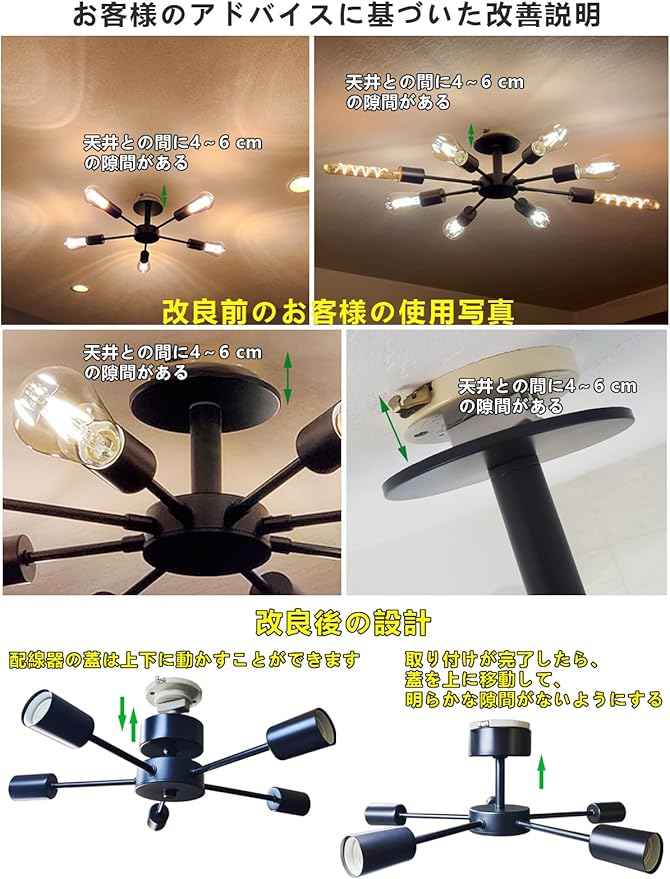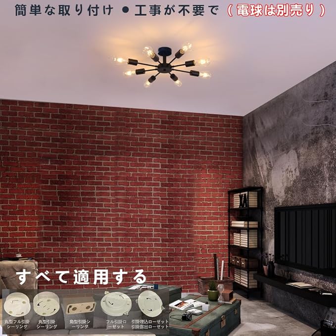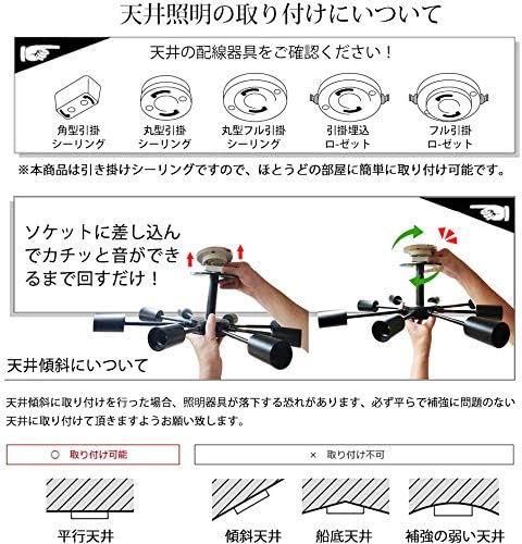 【簡単な取り付け】ペンダントライト8灯は引掛けシーリング式なので、取り付けは非常に便利で、工事不要、女性一人でも取り付けられます。★★★ご注意:感電の恐れがありますので、取付・取り外す前に必ず部屋の主電源のブレーキを下がってください!!!ご注意:傾斜のある天井、傾斜を合わせた舟底天井、凹凸のある天井ではご使用いただけません。必ず平らな天井に取り付けて下さい。