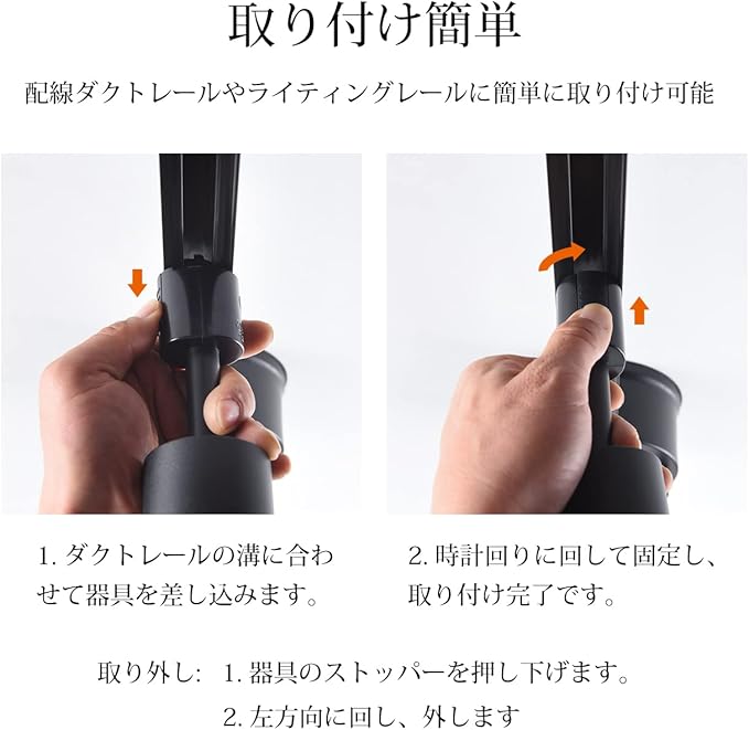 【角度の自由調整&取り付け簡単】上下方向に約90度、回転方向に約350度、照射角度もシーンに合わせてお好みの角度に調節出来ます。インテリア照明やアクセント照明に、かなり洒落です。工具不要、配線ダクトレールやライティングレール上に自由に配置できます。