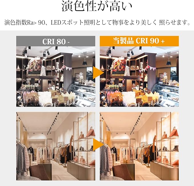 【商品情報】 ◉10W省エネ(75W形相当) ◉全光束:1000lm ◉色温度:3000K電球色 ◉CRI:Ra>90 ◉可動範囲:上下約90度、回転約350度 ◉ビーム角:約24度 ◉パッケージ:1個入
