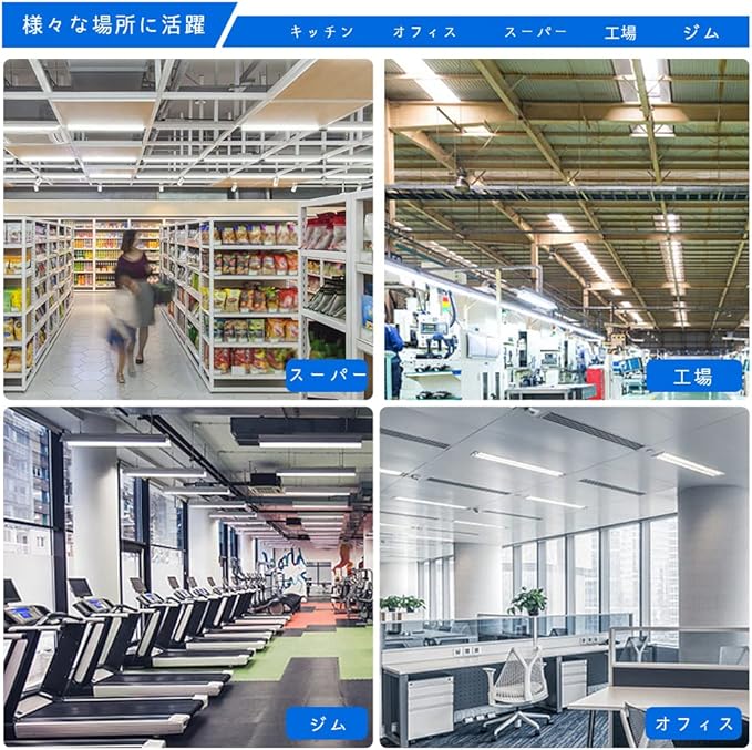 【様々な場所で活躍】:LED照明器具は家庭照明と商業照明によく使われています。家庭屋内照明として廊下、玄関、キッチン、リビング、子供部屋などによく使われています。商業照明としてガレージ、病院、学校、デパート、事務所、スーパー、会社、地下駐車場、工場などによく使われています。