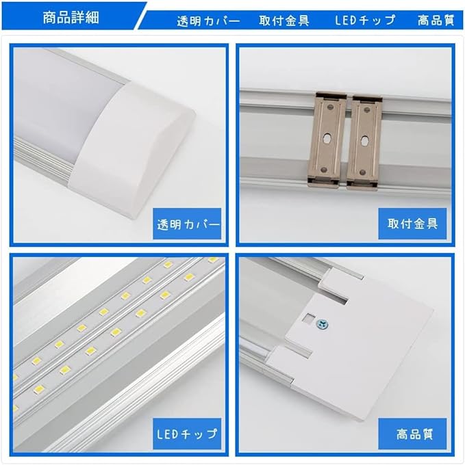 【高品材質】LED直管蛍光灯器具は高品質のポリカーボネートとアルミニウム素材を採用しました。ポリカーボネートカバーは透光度が高いで、放熱性が良い、均一発光して目に優しいです。 高度透明性と絶縁性などに優れています。裏面のカバーはアルミニウム素材で、錆びにくい、変形ににくい、あせにくいです。