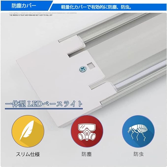 【取付簡単】ベースライト本体はとても軽いため、天井に付属のネジ2本付いて安心して取り付けできます。一体型の設計で、安定器とグロー管を必要としなく、電源線を繋ぐだけで取付可能です。薄型なLEDライトが様々なシーンに取り付けることができます。ご注意:電気工事には電気工事士の資格は必要があります。感電の恐れがありますので、取付・取り外す前に必ず電源を切てください。
