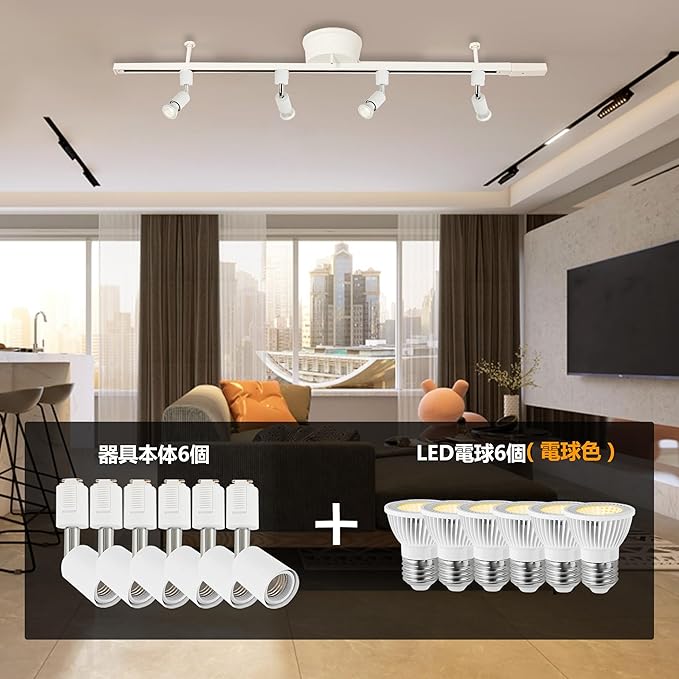ダクトレール スポットライト E26 LED電球付き 50W ダクトレール 照明 ライティングレール 照明 レール 照明 ダクトレール ライト レール ライト LED電球+ダクトレール用照明器具セット (ホワイト, 電球色 6個セット) | KAZESHOP