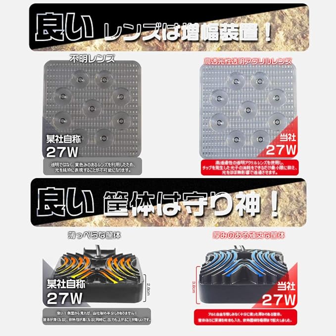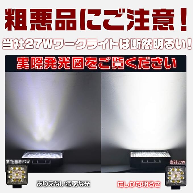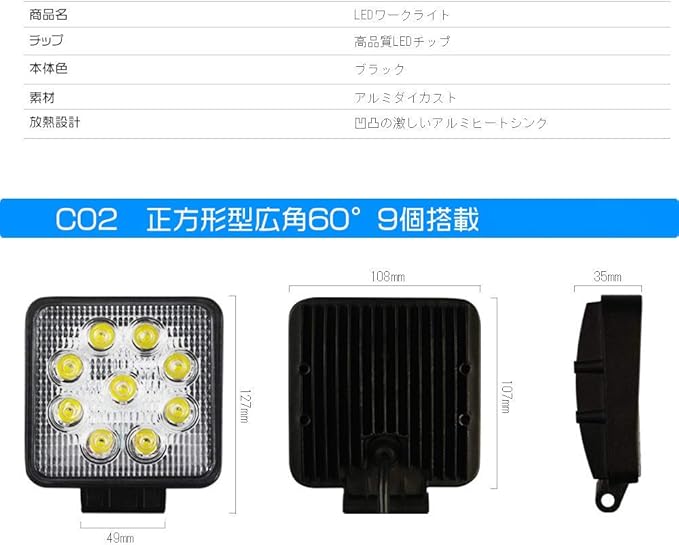 HIKARI独占販売 27W LED作業灯 広角 LED ワークライト 8V-60V対応 9連 3200lm 防水 フォークリフト トラック 看板灯 集魚灯 駐車場灯 屋外 照明 船舶 2個セット「A-GL-C02-Bx2」 | KAZESHOP