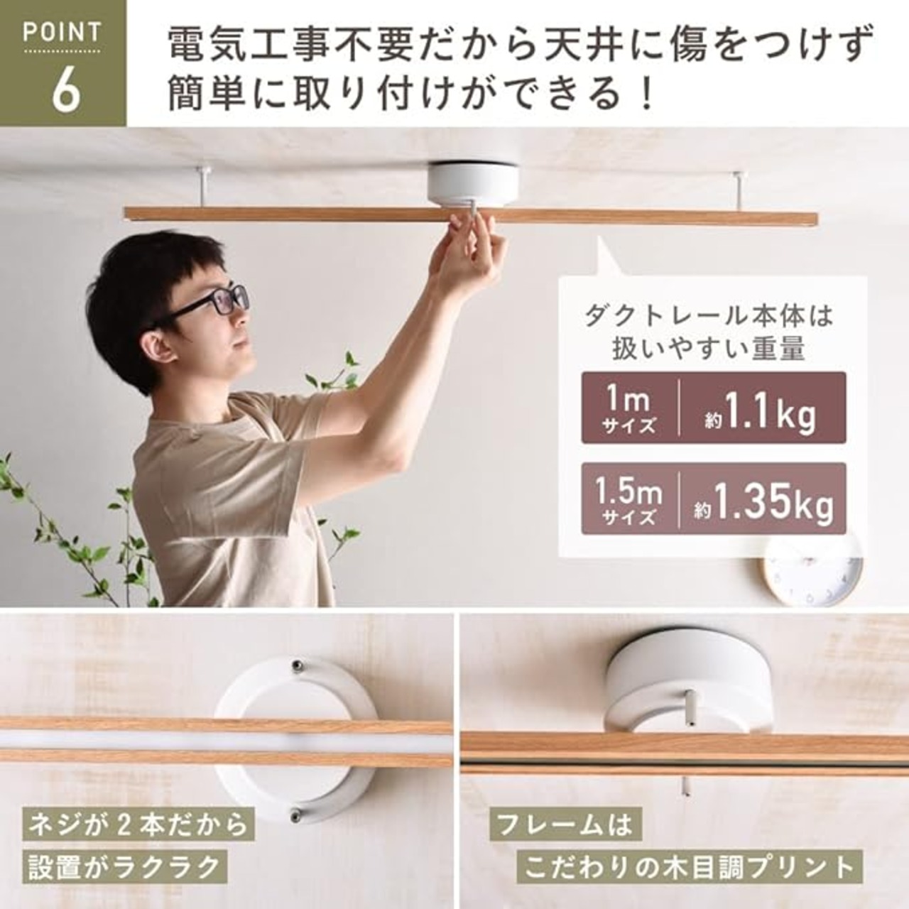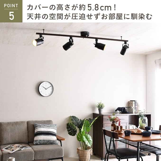 【カバーの高さが約5.8cm!天井の空間が圧迫せずお部屋に馴染む】ダクトレール単体を手元で見るとそれほど大きく感じなくても床面や壁面と違って何もない天井に取り付けると思った以上に大きく感じられることがあります。本商品は従来のものよりもカバーの高さが約5.8cmとコンパクトであるためお部屋に圧迫感を感じなくインテリアにしっかりと馴染んでくれます。こちらの商品はお客様のご都合による返品・交換は承っておりません。