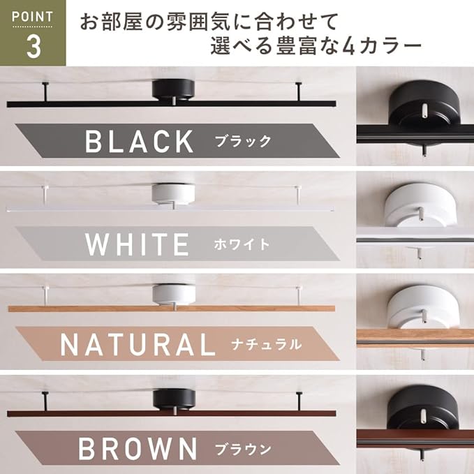 【お部屋の雰囲気に合わせて選べる豊富な 4 カラー】カラーはブラック/ホワイト/ナチュラル/ブラウンの4色でお部屋のテイストに合わせてお選びいただけます。ブラックとホワイトのカバー部分はマットな素材感でスタイリッシュなインテリアが好きな方におすすめのカラーです。ナチュラル/ブラウンは、木目のプリントを施しており落ち着いた優しいナチュラルな雰囲気が好きな方におすすめです。どの照明のライトを取り付けてもダクトレールと馴染みおしゃれな空間を創り出せます。