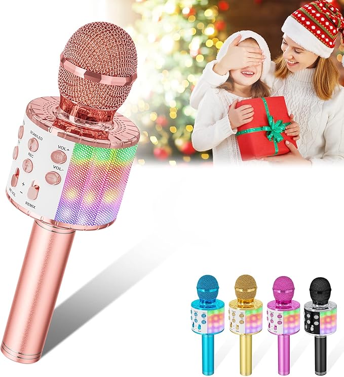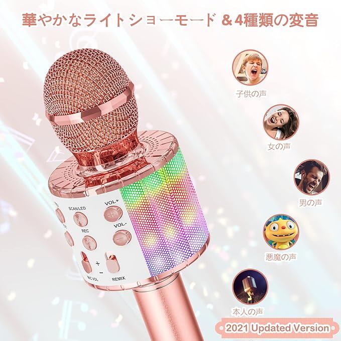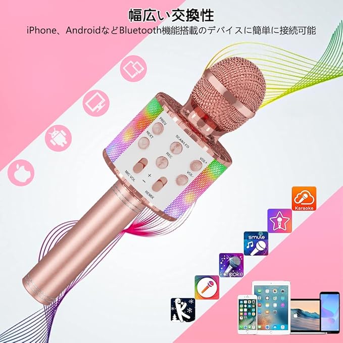 Verkstar カラオケマイク Bluetooth マイク ワイヤレス karaoke 録音可能 無線マイク 多彩LEDライト付き エコー機能搭載 Bluetoothで簡単に接続 伴奏機能付き 音楽再生 家庭カラオケ ノイズキャンセリング Android/iPhoneに対応 (pink) | KAZESHOP
