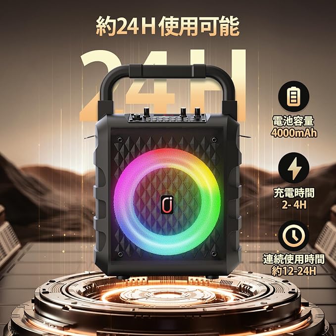 【大容量スピーカー、24H対応】:パワフルサウンドと最大24時間連続再生の無敵コンビ!JYXスピーカーセットは、6500mAhの大容量、充電式のリチウムイオンを搭載し、一度の充電で驚異の最大24時間連続再生を実現。終わりのないパーティーやキャンプでも音楽が止まらない、まさに無限の音楽体験を提供するスピーカーセットです!