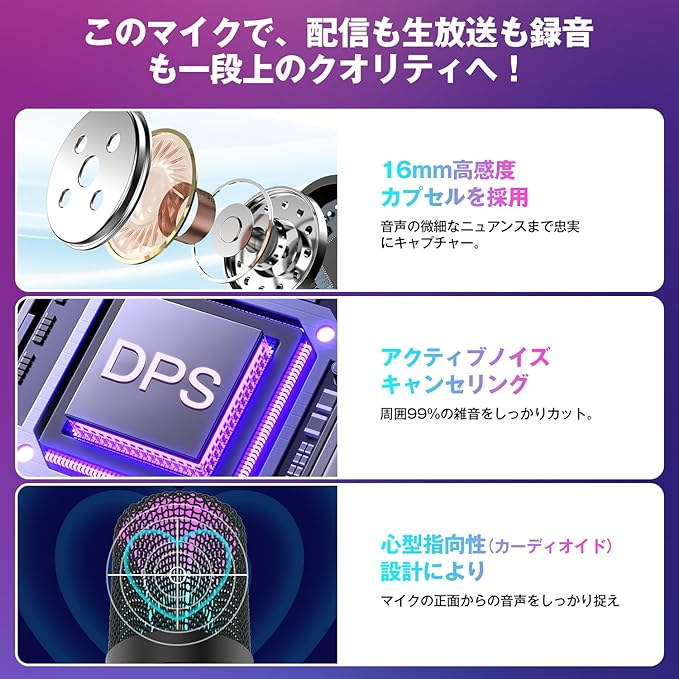 【幅広い互換性&即プラグ&プレイ対応】多機能マイクはwindows、mac、ps4、5など幅広いデバイスに対応。USB接続で即使用可能、面倒なドライバーインストールは不要です。初心者でも安心して使い始められる設計で、プロ品質の音声を手軽に体感できます。このマイクがあれば、配信も録音もプロフェッショナルなクオリティで楽しめます