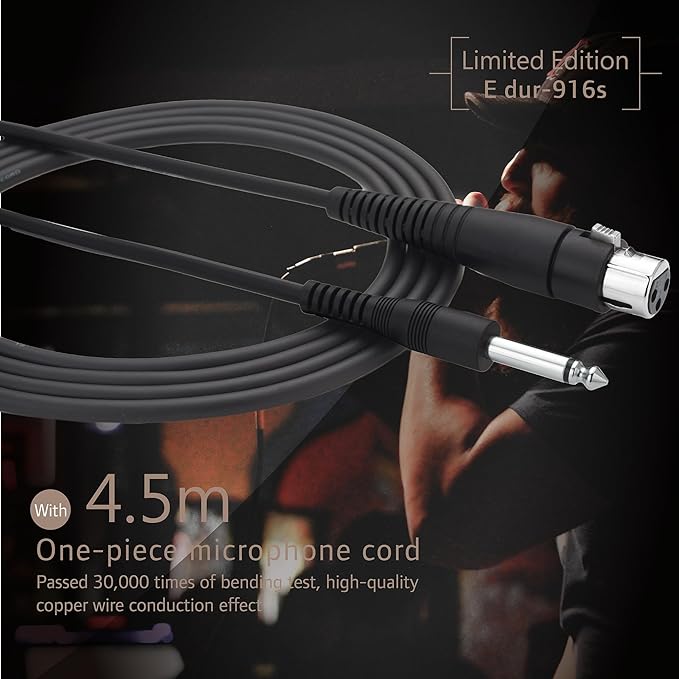 XLRから1/4インチケーブル付属 - カラオケマイクをアンプスピーカーや1/4インチ(6.35mm)マイクジャックを備えたカラオケ機器に直接接続できます。音声を損失なく伝えるために十分な厚さで、14.7フィートの長さで自由に動け、パフォーマンスに集中できます