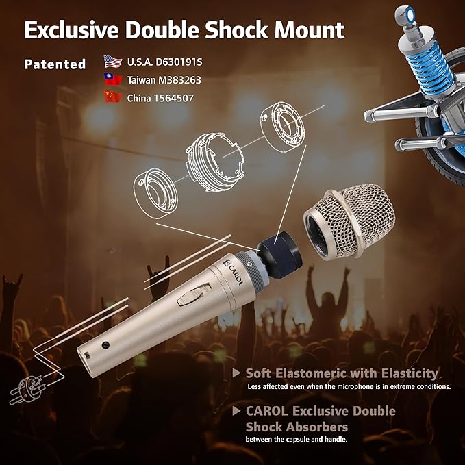CAROL E dur-916S マイク XLR ダイナミック 単一指向性 スーパーカーディオイド 録音 歌ってみる 生放送 YOUTUBE ゲーム実況 動画配信 舞台 スタジオ スピーチ ボーカル向け 全方位 ボーカル スイッチ内蔵 マイクケーブル付 (4.5メートル XLR線 6.35mmプラグ) (ゴールド) | KAZESHOP