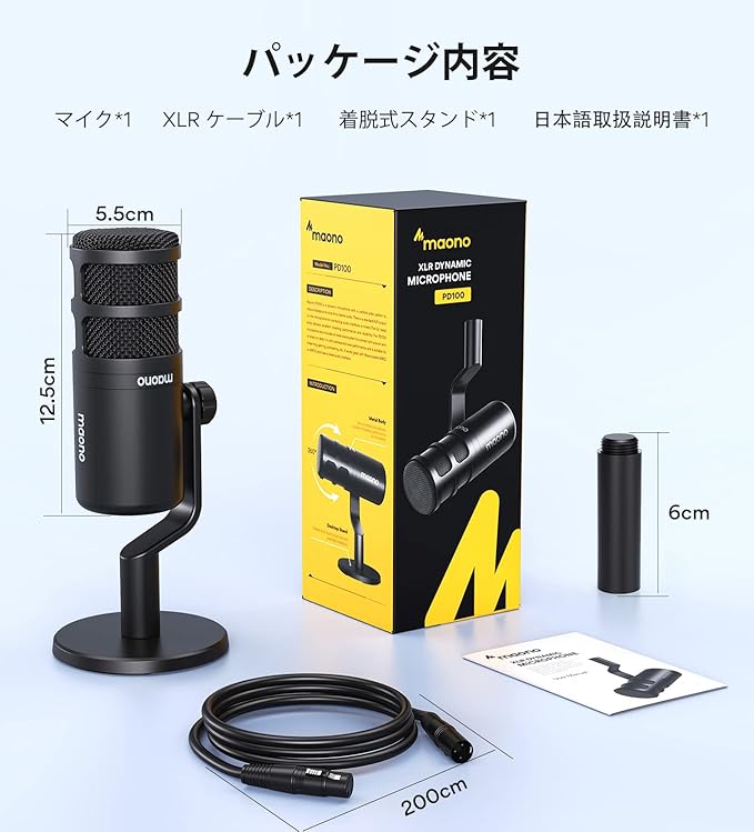 MAONO XLR マイク ダイナミックマイク ボーカルマイク 単一指向性 ポップフィルター内蔵 XLR-XLRケーブル接続 マイクスタンド付き オーディオミキサー/サウンドカード/音響機械向け ライブ配信/ゲーム実況/YOUTUBE/ポッドキャスト/宅録/生放送/ストリーミングに適用 適格請求書発行可 PD100 | KAZESHOP