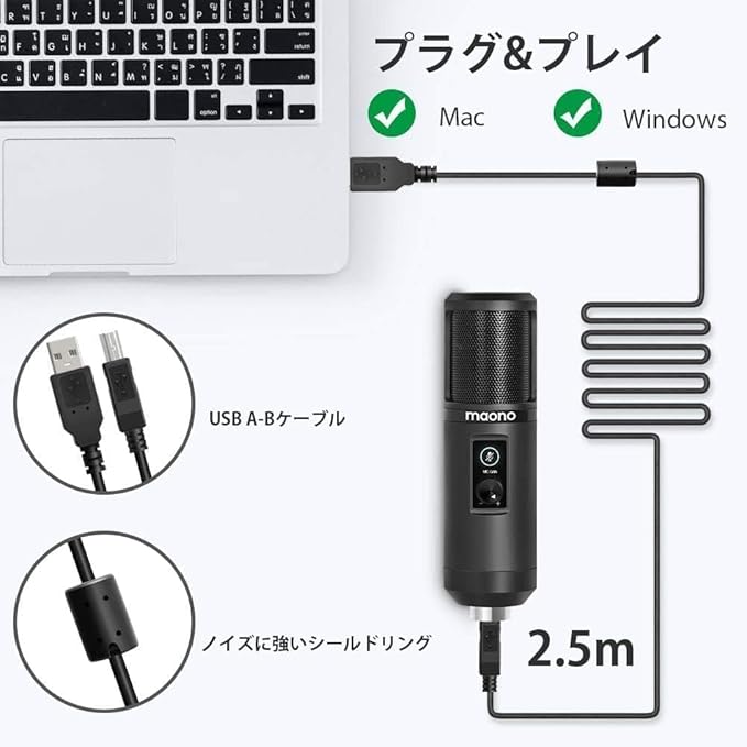 MAONO USB マイク コンデンサーマイク PCマイク セット 192KHZ/24BIT 単一指向性 タッチミュートボタン ゲイン調整ノブ USBケーブル付き 録音 ライブ配信 YOUTUBE ゲーム実況 在宅勤務 Windows/MacOS/PS4/PS5対応 AU-PM421 | KAZESHOP