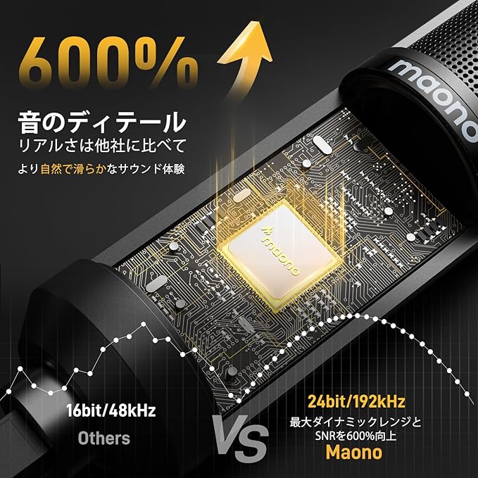 【高音質&ノイズ軽減】カーディオイド集音の単一指向性集音USBコンデンサーマイクで、音声に感度が高く、正面(maonoロゴがある面)を中心として約130 範囲内の音を収集でき、周りの騒音を効果的に抑えられます。サンプリングレートは192kHz/24bitに達して、プロなサウンドカードも内蔵して、収録した音声を忠実的に再現できます。ご注意:USBマイクから15-30cm離れて使用するのをお勧めします。