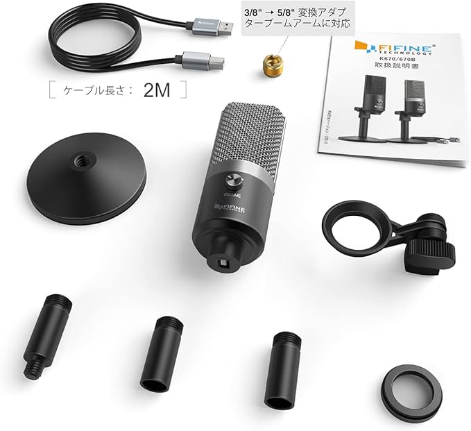 FIFINE USBマイクロフォン コンデンサーマイク イヤホン端子付き マイクスタンド高さ調節可能 ABタイプ USBケーブル付き 単一指向性 Skype ライブ配信 ゲーム実況 PC用 Windows Mac PS4対応 適格請求書発行可 K670 | KAZESHOP