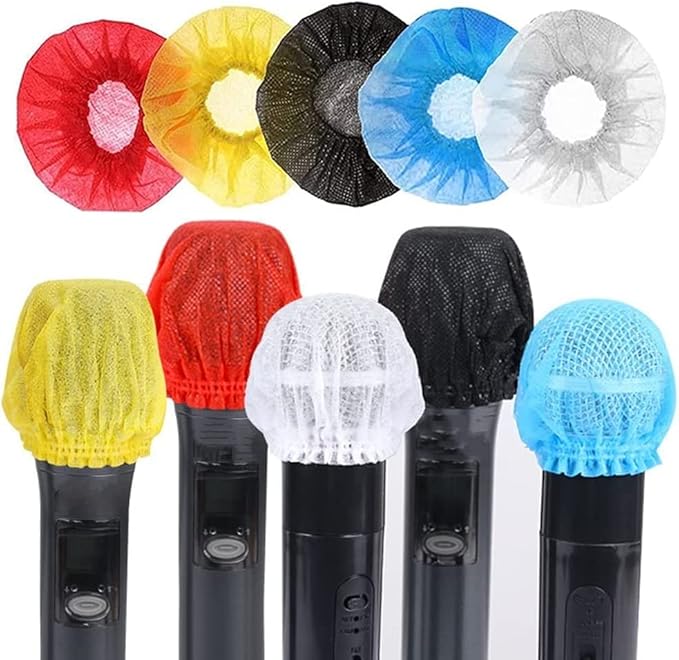 【Amazon限定ブランド】マイクのウインドスクリーン マイクロフォンカバー 使い捨て 不織布 マイクカバー ノイズ防止 飛沫防止 抗菌 防風 防塵 マイクキャップ カラオケ用 講演 会議用 (5色ミックス100個入) (5色) | KAZESHOP