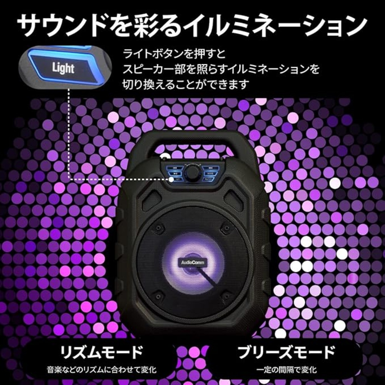 オーム(OHM)オーム電機AudioComm スピーカー ワイヤレス Bluetooth5.3 サウンド連動イルミネーション ポータブルパーティースピーカー microSDカード対応 FMラジオ IPX6耐水形 マイク端子付き カラオケも楽しめる ASP-W600N 03-2169 | KAZESHOP
