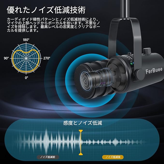 【綺麗な音声】単一指向性(カーディオイド指向性)ダイナミックマイクは、不要なノイズを大幅に抑制し、音声のオリジナリティと明瞭度を実現します。
