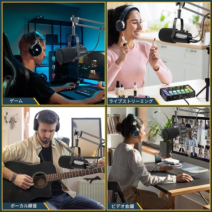 【幅広い用途】XLR・USB両対応ダイナミックマイクは、簡単な操作と高い機能性を兼ね備え、YouTube、Instagram、TikTok、ゲーム実況、録音、ストリーミング、ボイスチャット、カラオケ、生放送、ZOOM会議、ニコニコ動画、Twitter、ツイキャスなど様々なシーンに大活躍してくれます。