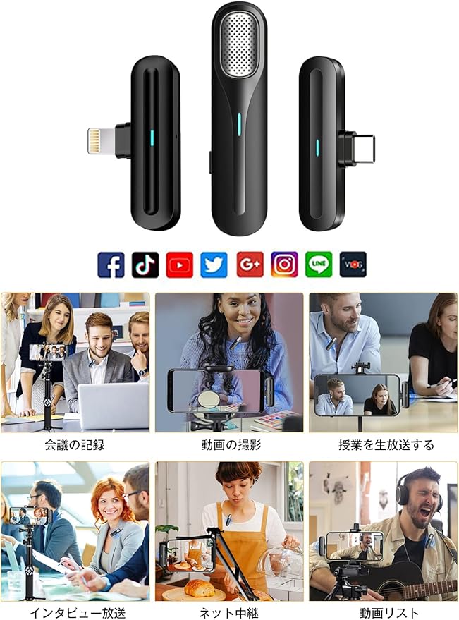 【互換性のあるiOSデバイス】:i Phone 11/12/13 / Pro / Pro Max、i Phone X / XR / XS、i Phone 8 / 8s、i Phone 7 / 7s、iPhoneと互換性のあるビデオ録画ワイヤレスLapelマイク6 / 6s、i Pad Mini / Air / Pro用(注:type-cポートを備えたi Pad Pro / Airの最新バージョンはサポートされていません)。
