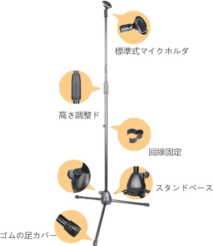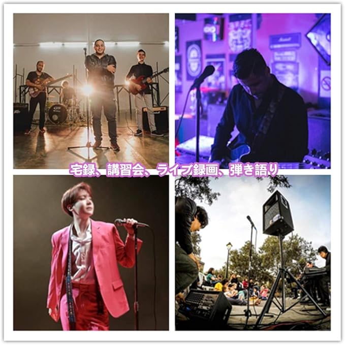 ストレートタイプ兼用、使いやすいマイクスタンド、宅録、講習会、ライブ録画、弾き語りの際にはボーカルマイク用・アコギ集音マイク用。 様々な音楽シーンで活躍します。