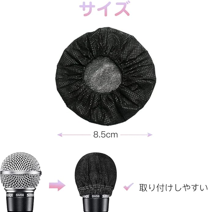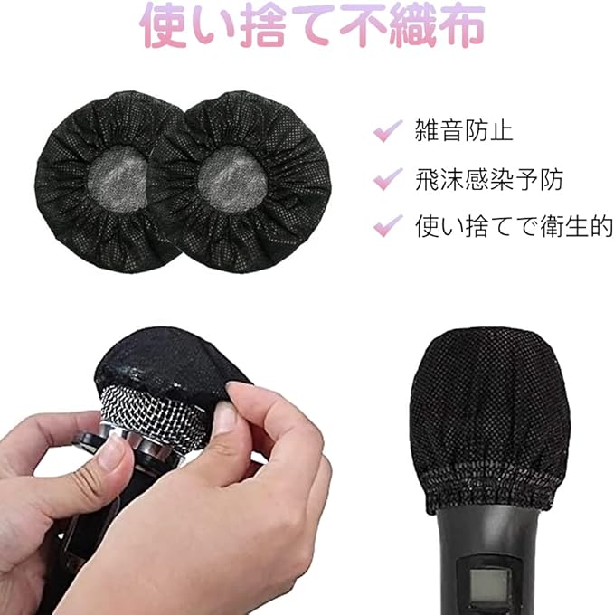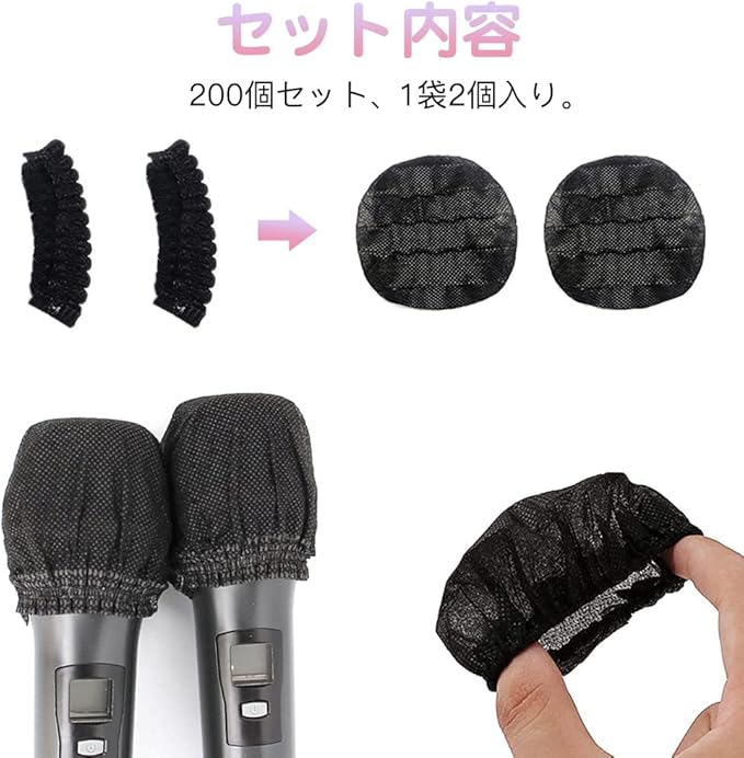 サムコス マイクカバー 使い捨て 200個入り 不織布 ノイズ防止マイクカバー 抗菌マイクカバー マイクロフォン カバー マイクキャップ ボール形状 雑音防止 飛沫防止 防塵マイクキャップ 講演 カラオケ用 (ブラック) | KAZESHOP