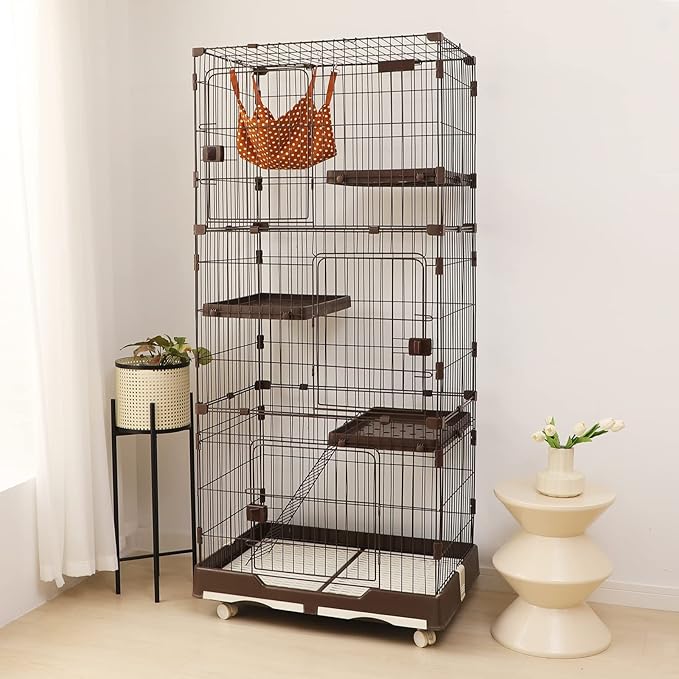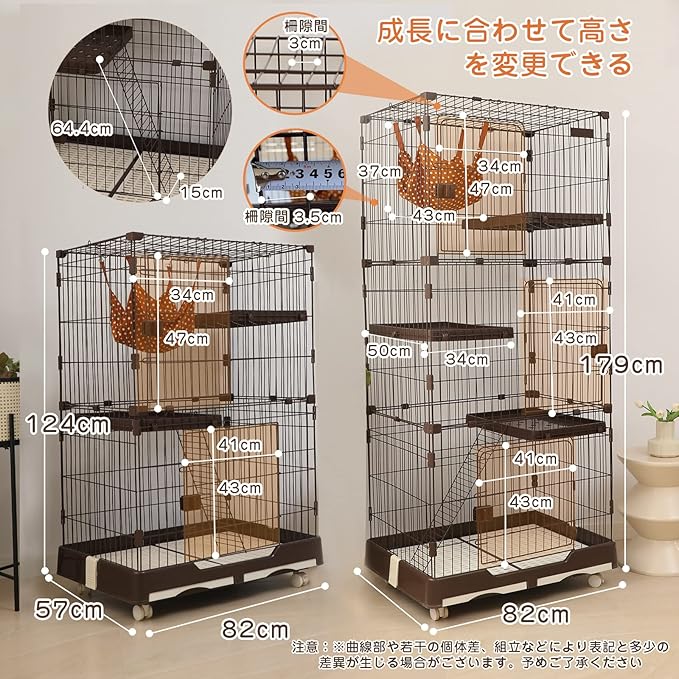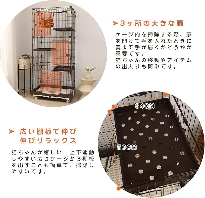 PETTOM 猫ケージ キャットケージ ケージ 幅82cm 2/3段 ペット 猫 キャットゲージ キャット タワー 収納 キャスター 付 脱走防止扉 頑丈 檻 ねこ ネコケージ コンパクト ハンモック 多頭飼い (三段(82*57*179CM)) | KAZESHOP
