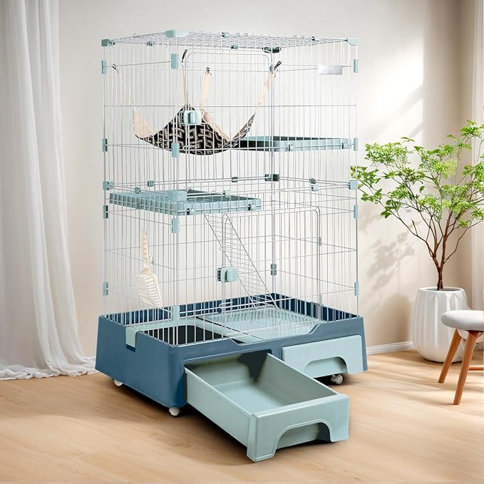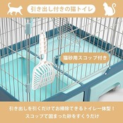 猫 ケージ キャットケージ ペットケージ トイレ付き 引き出し キャスター 3段 大型 猫用 キャットサークル コンパクト 組み立て簡単 梯子 ワイド扉付き おしゃれ 日本語説明書 頑丈 耐荷重10kg (あおいろ, 3段) | KAZESHOP
