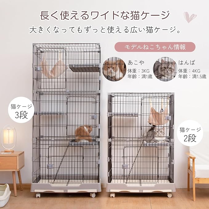 【1段・2段タイプとしても可能 &猫ケージ 3段】子猫ちゃん1匹は1段、大きくなったり、家族が増えたり、新しい猫ちゃんを迎えたりする場合は、ペットケージを2段や3段まで増築して、快適スペース!