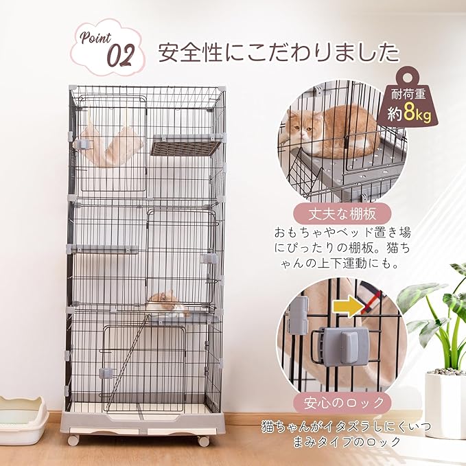 【スライド式ロック&猫 ケージ 多頭飼い】つまんで開閉するロックですので、猫ちゃんのイタズラ開きを防止できます。猫ちゃんにお留守番させる時も安心できます!猫ケージ !猫ちゃんがケージに慣れない場合は猫のお気に入り物を入れるのがおすすめです。