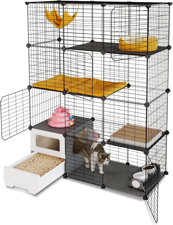 Topzoo 猫 ケージ トイレ付き 高さ143 幅107 奥行き45cm トイレ一体型 防臭 飛散軽減 3段 引き出し スコップ付き 掃除しやすい キャットケージ 組立簡単 猫用ケージ 大型 幅広 多頭飼い 脱走防止 コンパクト 子猫 保護用 室内用 日本語説明書付き ブラック | KAZESHOP