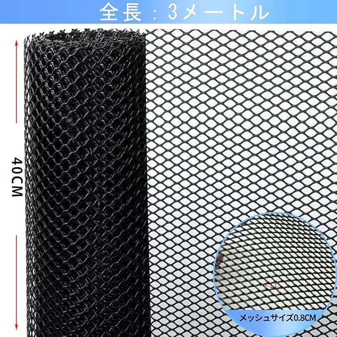 【サイズ】プラスチック網幅40cm 長さ3m。網ネット空き巣、窓のシーリング、ペットネットなど、さまざまな用途に最適