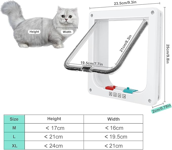 トンネル部品がなく、切断不要-パネルの厚さはわずか0.78インチで、窓、木のドア、スライドガラスドアなどに適しています。猫ドアの外形寸法は7.7 x 7.5インチ、バッフルの寸法は6.7インチx 6.3インチで、ウエストが19.8インチ未満の猫と犬に最適です。