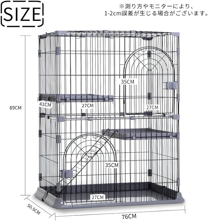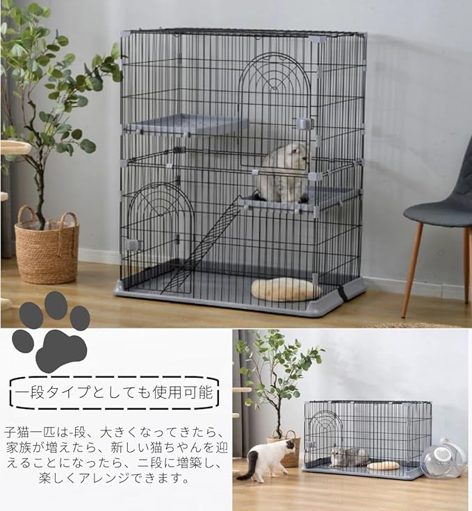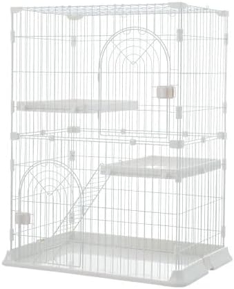 N&S猫ケージ キャットケージ 猫 ケージ 大型 ペットケージ ドア付き ワイド扉 多頭飼い 脱走防止 猫ハウス 組み替え自由 組立簡単 おしゃれ ハンモック付き はしご 棚板 (ホワイト, 2段(76 50.5 89cm)) | KAZESHOP