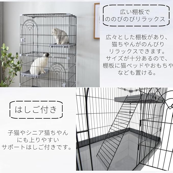 【梯子付き】上り下りしやすい梯子が付属していますので、子猫や年老いた猫ちゃんの場合、足腰が弱いことがありますが、梯子の設計によって負担を軽減し、自由に移動できるようになります。