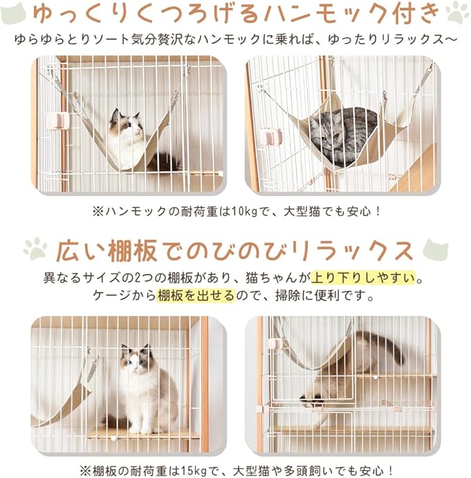 BTM 猫 ケージ キャットケージ 2段 木製フレーム 猫ゲージ キャットハウス ハンモック付き 引出し式トレー付 天板 頑丈設計 大型 多頭飼い 留守番 保護 脱走防止 おしゃれ | KAZESHOP
