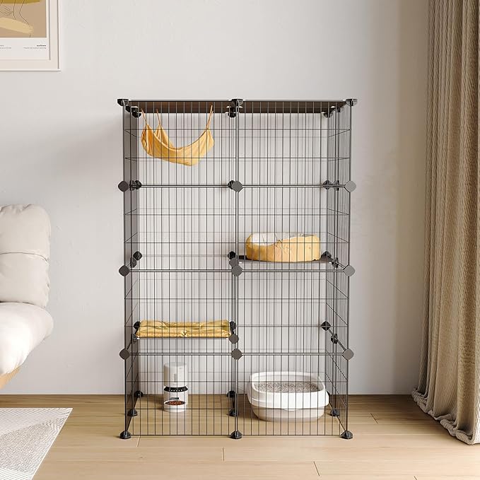 Topzoo 猫 ケージ 高さ123 幅81 奥行き61cm 2段 大型 ワイド扉 組立簡単 キャットケージ 多頭飼い 猫用ケージ 掃除簡単 脱走防止 組み替え自由 コンパクト 室内用 日本語説明書付き ブラック | KAZESHOP