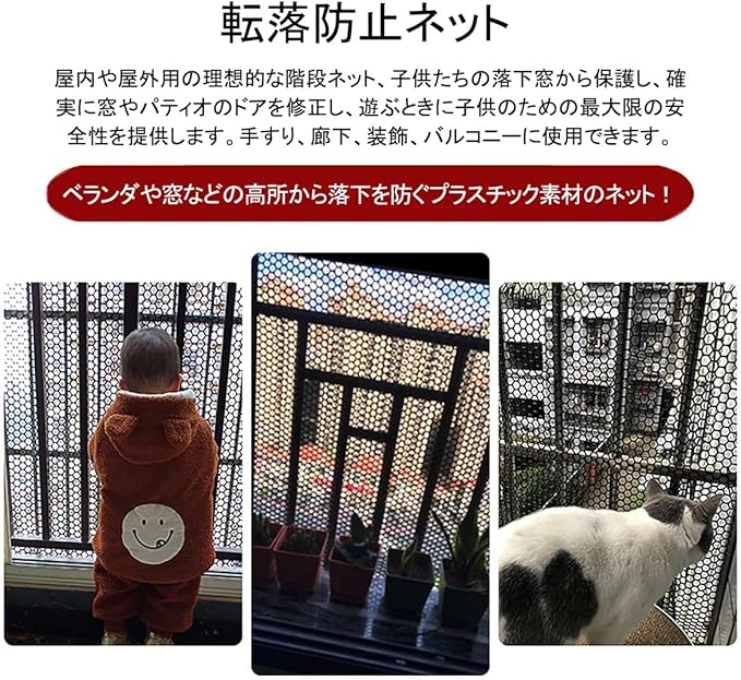 【安全デザイン】屋内や屋外用の理想的なフェンスネットネット、子供たちの落下窓から保護し、確実に窓やパティオのドアを修正し、遊ぶときに子供のための最大限の安全性を提供します。手すり、廊下、装飾、バルコニーに使用できます。