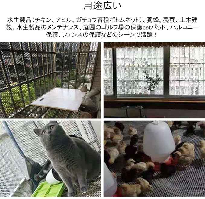 【幅広い用途】水生製品(チキン、アヒル、ガチョウ育種ボトムネット)、養蜂、養蚕、土木建設、水生製品のメンテナンス、庭園のゴルフ場の保護petパッド、バルコニー保護、フェンスの保護などのシーンで活躍!ペットのゲートウォールプロテクターとしても使用できます。