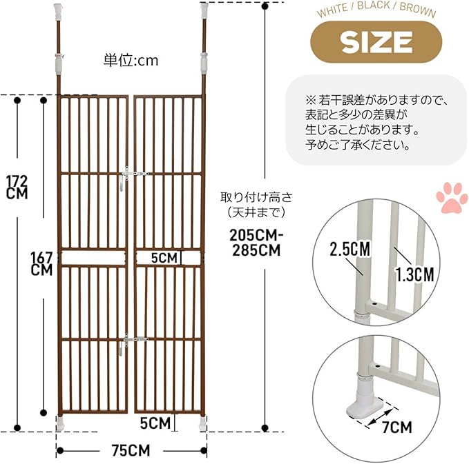 頑丈な突っ張り式:防震性が強い突っ張り式のフェンスです。ペットがフェンスを倒すのを恐れはありません。