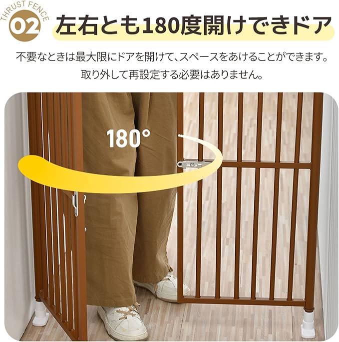 左右とも180度開けできドア:不要なときは最大限にドアを開けて、スペースを譲ることができます。取り外して再設定する必要はありません。