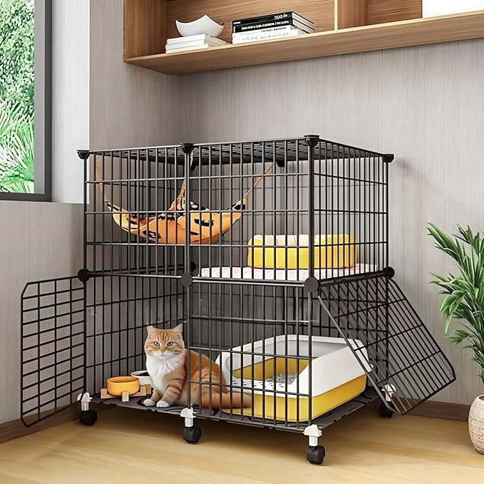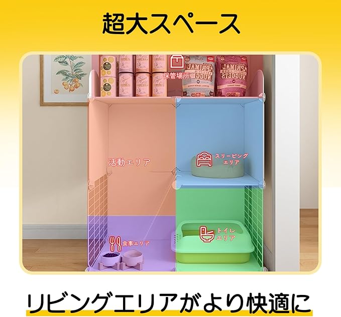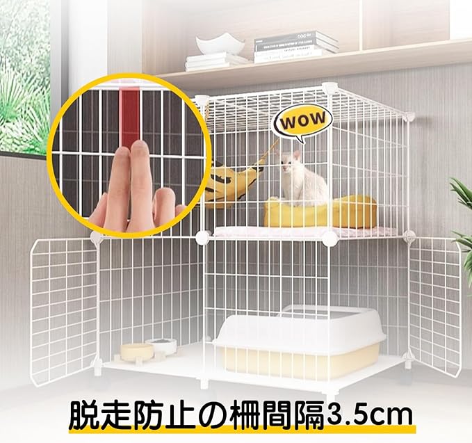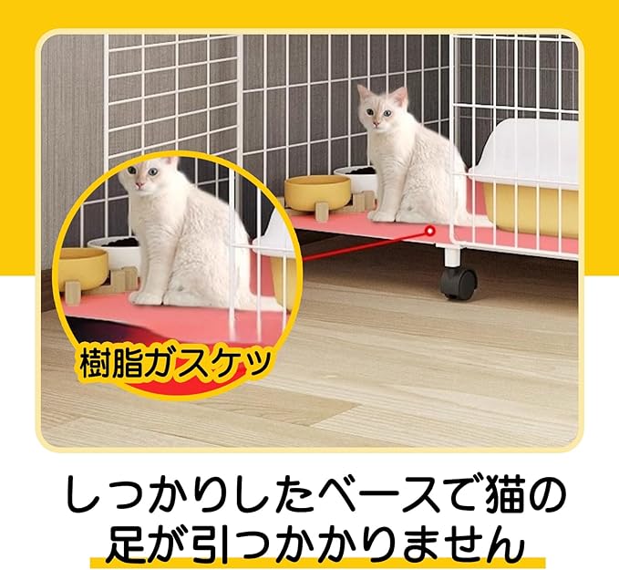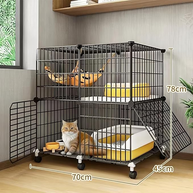 【広々スペース/多頭適応】この2段式猫ケージは、広々とした空間で猫が自由に上下運動できるデザインです。2匹以上の猫が一緒に過ごしても窮屈さを感じさせません。トイレやフィーダーなど、猫の生活必需品を一箇所にまとめて収納できるオールインワン仕様です。