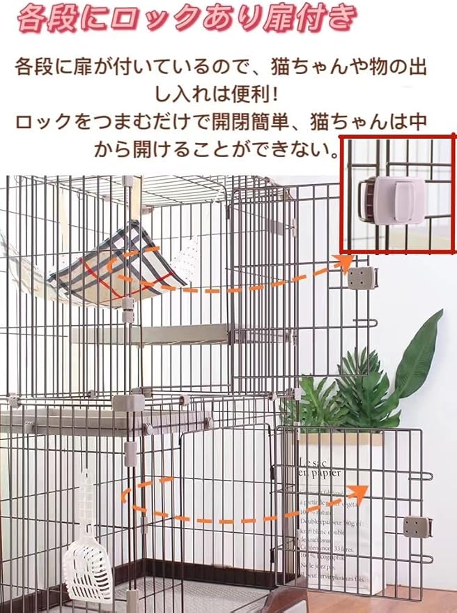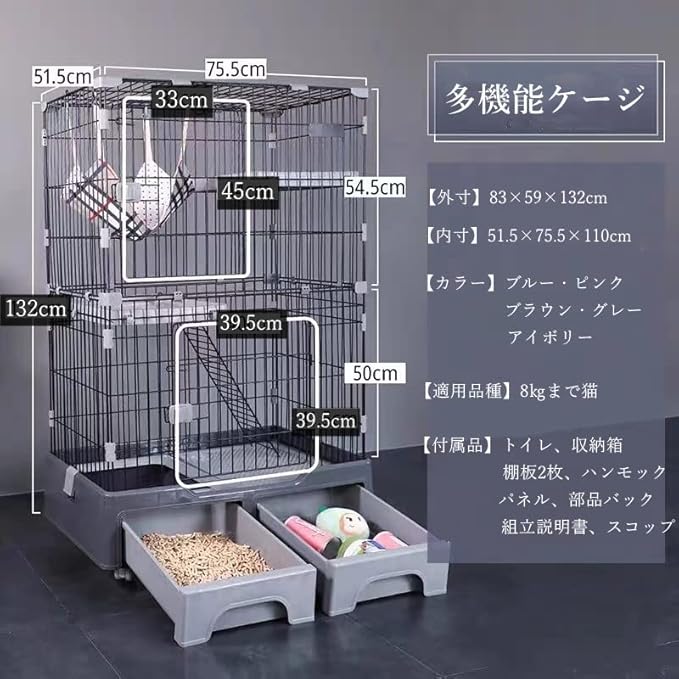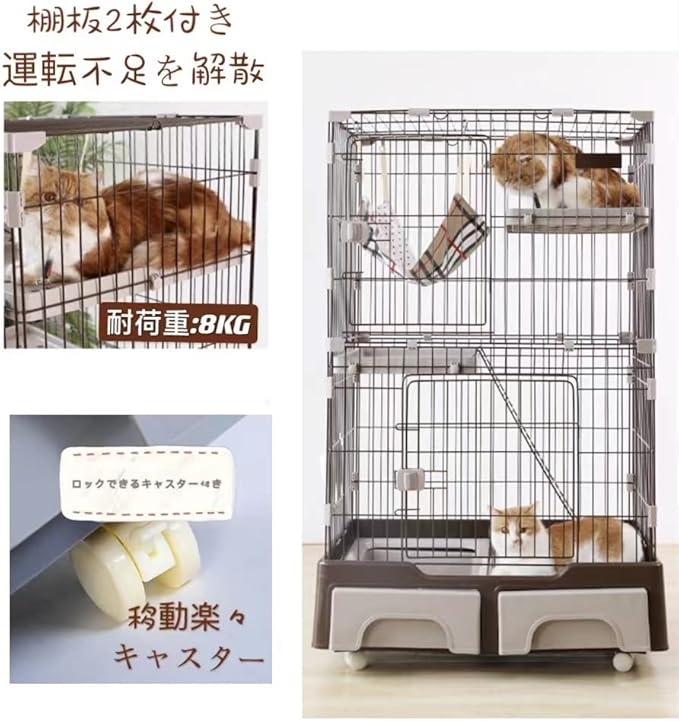 牧小苫\msmrケージ ゲージ 猫ケージ キャットケージ ペット 猫 ベビー キャットタワー スタジアム 収納 キャスター付き 猫トイレ付 脱走防止 頑丈 檻ねこ ネコケージ (, 2段) | KAZESHOP