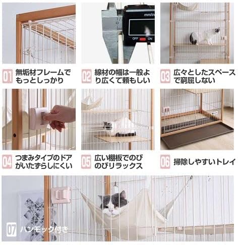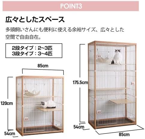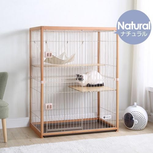 BTM 猫ケージ キャットケージ 2段 木製フレーム 広々 大型 おしゃれ キャットハウス ネコハウス 留守番 梯子付き 保護 脱走防止 組み立て簡単 多頭飼い 多頭 ペットケージ ナチュラル | KAZESHOP