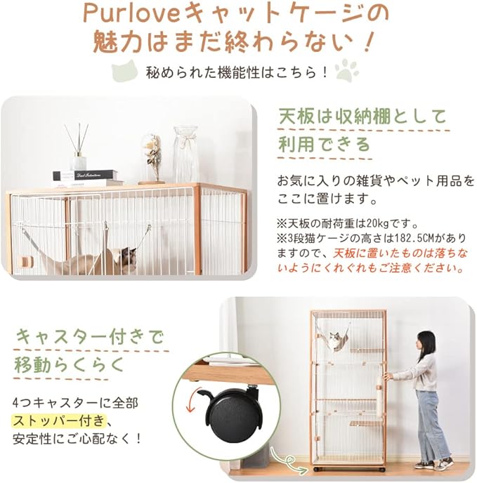 【こんな時に大活躍キャットケージ】お留守番時に子猫の安全を守る、多頭飼いの時けんか防止用、猫の運動不足を解消したい時ケージ内で上下運動できる、猫が病気になる時世話しやすい、お料理中やお食事中いたずら防止やテーブルに上がるのを防止…大事な猫ちゃんの安全を守って、飼い主も安心です!