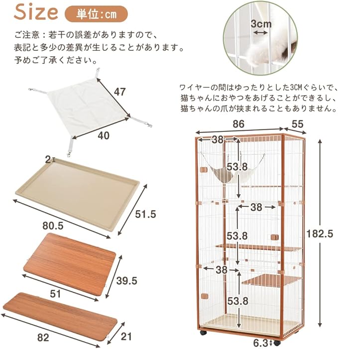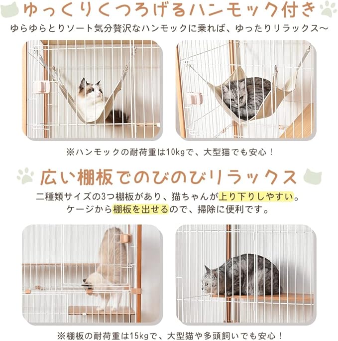 OSJ 猫 ケージ キャットケージ 3段 木製フレーム 猫ゲージ 多頭飼い キャットハウス ハンモック付き 引出し式トレー付 天板 頑丈設計 大型 留守番 保護 脱走防止 おしゃれ | KAZESHOP